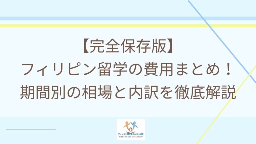 - バコロド(特にActi-LABO)を検討する:セブ島より月5〜6万円安く、3ヶ月で15〜18万円の節約。日本人経営のActi-LABOなら初めての留学でも安心です。