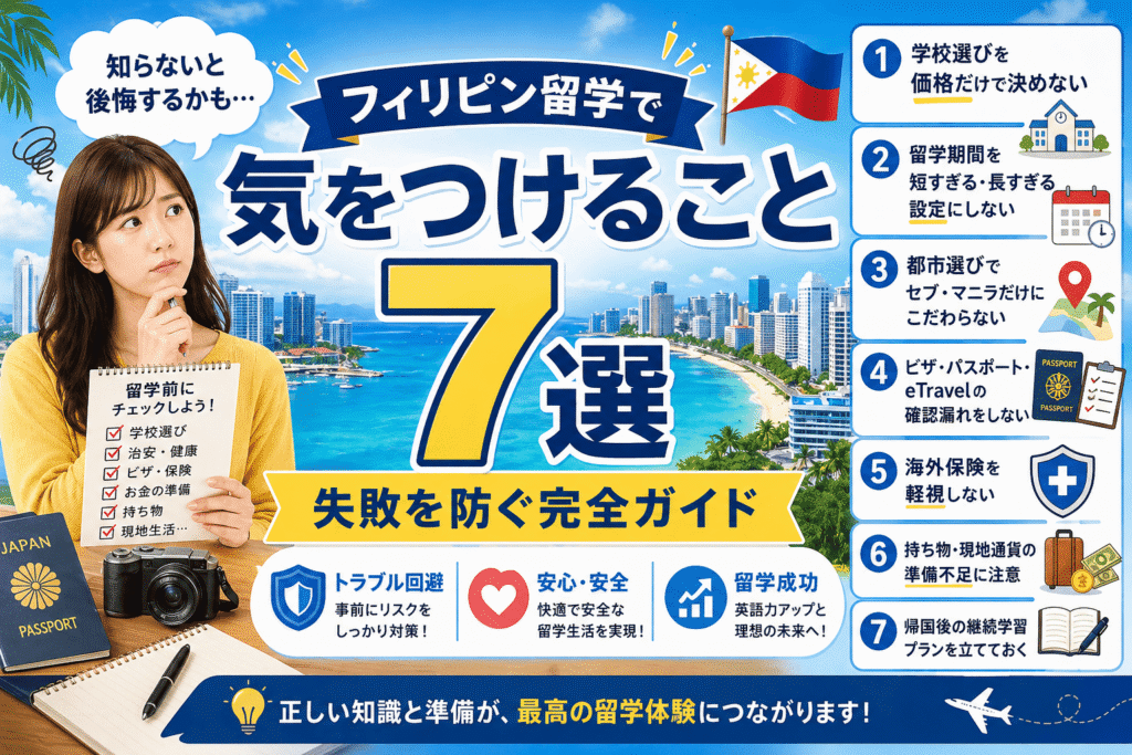 同じテーマで失敗回避を深掘りしたい方はフィリピン留学で後悔する7つの理由も合わせて参考になります。