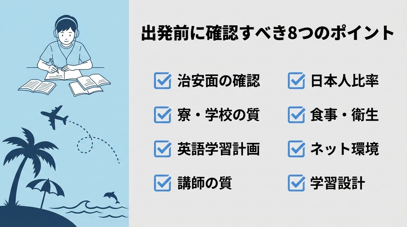 > 留学出発前に確認すbき8つのポイント
